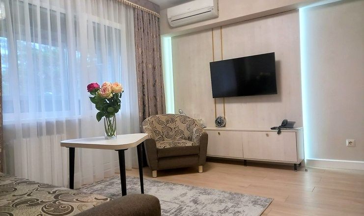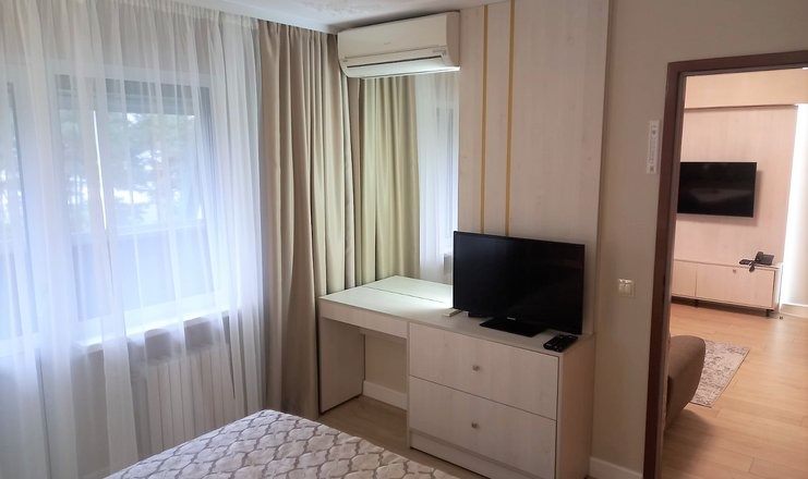 В номере: кондиционер, набор посуды, сейф, телевизор, телефон, холодильник и электрочайник.