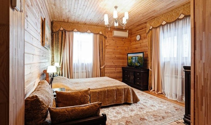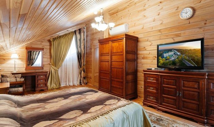 Номер с двуспальной кроватью и кухонной мебелью. В наличии: гладильная доска и утюг, кондиционер, кофемашина, микроволновая печь, набор посуды, посудомоечная машина.